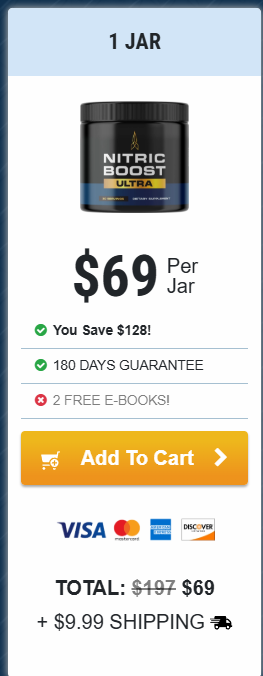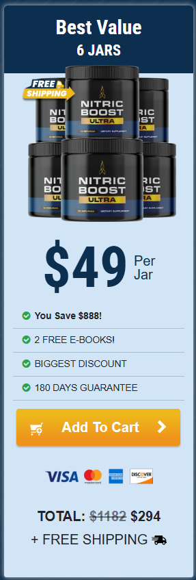 At this moment you can order Nitric Boost Ultra supplement for 75% OFF + FREE Shipping. This is a Limited-Time Offer and it won’t be available for long.